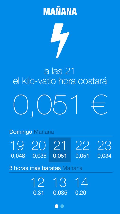 Mientras hacía el paso anterior Emilio se iba encargando del diseño de la aplicación. Justamente el resto del día fue un poco en gestionar el sencillo diseño para adaptarlo. Al principio sólo fue mostrar el precio del día siguiente justo a la hora en que nos encontrábamos(si eran las 10 de la mañana, mostrar el precio de las 10 de la mañana del día siguiente).